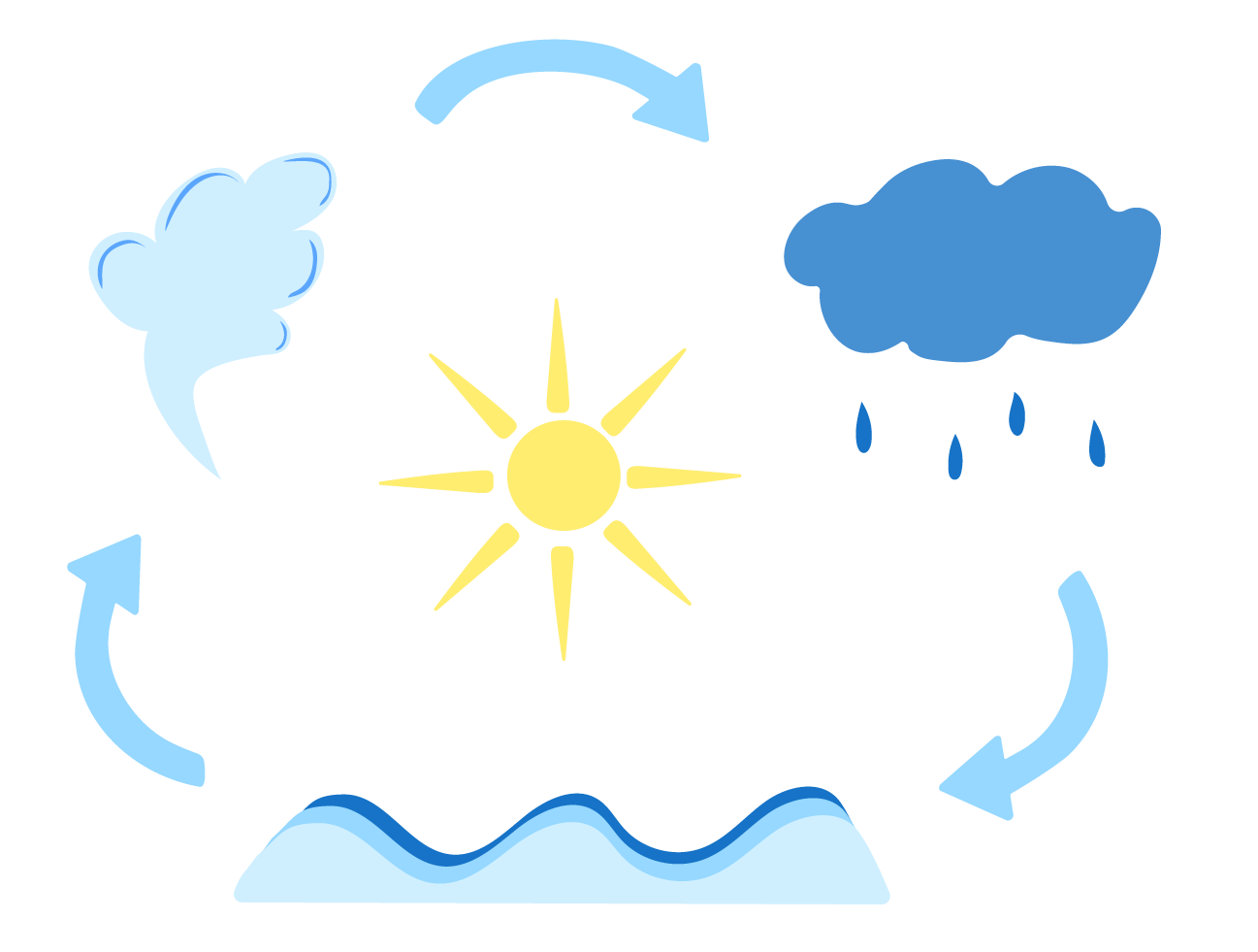 Vannets kretsløp Publisert 24. september 2025 Visste du at 71% av jordens overflate er dekket av vann? Dette vannet er i stadig bevegelse. Vann som befinner seg i Nidelven i Trondheim kan tidligere ha vært i luften som vanndamp eller i et snøkorn som fast is. Denne bevegelsen av vann spiller en helt sentral rolle for jordens natur og klima. Vi kaller det for vannets kretsløp. Hvordan fungerer vannets kretsløp? Vannets kretsløp er sirkulasjonen av vann mellom atmosfæren, jordens overflate og havene. Gjennom oppvarming fra solen omdannes vann i havene til vanndamp i atmosfæren. På grunn av solens avgjørende rolle kaller vi den drivkraften bak kretsløpet. I luften vil vanndamp avkjøles slik at det dannes skyer, og vannet returnerer til jordoverflaten og hav som nedbør. Dette er de overordnede stegene i kretsløpet, men vannet er ofte gjennom flere mellomsteg som kan sees på som “lagringsplasser”. For eksempel lagres noe av vannet i en periode som is eller snø, før det smelter til flytende vann og beveger seg videre i kretsløpet. Vann kan også oppholde seg i bakken som grunnvann, eller i planter og andre organismer. Vannets kretsløp kalles for en syklus, fordi det verken har et start eller sluttpunkt. Illustrasjon: UngKlima Faseendring av vann er sentralt i dette kretsløpet. Når vannet omdannes fra fast is til flytende vann, kalles det smelting. Overgangen fra væske til vanndamp kaller vi fordampning, mens den motsatte prosessen heter kondensering. Når flytende vann omdannes til is kalles prosessen frysing. Rolle i naturen og for klimaet Vann, og vannets kretsløp, er helt avgjørende for alt liv på jorden. Vannets stadige bevegelse i kretsløpet sørger for at levende organismer får tilgang på vann. Dette er avgjørende for at planter skal kunne drive fotosyntese, som ofte regnes som den viktigste livsprosessen på jorden! Uten fotosyntesen ville ikke jordens arter, inkludert oss mennesker, fått tilstrekkelig tilgang på oksygen og mat. Dette gjør vannets kretsløp til en nøkkelfaktor i naturen. For å opprettholde balansen i økosystemene er det viktig at organismer får tilgang på nødvendige næringsstoffer. Her spiller også vannets kretsløp inn. Et eksempel er transporten av nitrogenholdige forbindelser, i det som kalles nitrogenets kretsløp. Her spiller den kontinuerlige bevegelsen av vann en avgjørende rolle. Vann er også en viktig bidragsyter i karbonets kretsløp og flere andre. Vannets kretsløp bidrar også til å regulere jordens klima. Bevegelsen av vann i havet kalles havstrømmer, og disse er essensielle for å fordele varme rundt på kloden. Havområdene rundt ekvator blir varmet opp mer enn områdene rundt polene. Ved hjelp av havstrømmene fraktes oppvarmet vann fra ekvator til polene, og kaldere vann motsatt vei. Uten dette ville regionale temperaturer vært mer ekstreme og færre leveområder ville vært beboelige. Da hadde klimaet i Norge vært omtrent som på Grønland! Nedbør som dannes i vannets kretsløp er også en viktig del av jordens klimasystem. Nedbør påvirker klimaet over alt, enten på grunn av mye regn eller mangelen på det. Områder med tropisk regnskogklima eller monsunklima er preget av mye nedbør store deler av året. Klimaet i Norge kalles ofte temperert klima, og er preget av store variasjoner i nedbørsmengder. Med andre ord har sirkulasjonen av vann stor påvirkning for det varierende klimaet vi har på jorden i dag. Menneskelig påvirkning Menneskelig aktivitet har en innvirkning på vannets kretsløp. Menneskeskapte utslipp av drivhusgasser bidrar til global oppvarming og at temperaturen på jorden øker. En varmere atmosfære setter fart på vannets kretsløp, fordi varm luft kan holde på mer fuktighet enn kald luft. Dette medfører at mer vanndamp er tilgjengelig for å bli omdannet til nedbør, og hastigheten på syklusen øker. Ifølge Meterologisk institutt øker luftens evne til å holde på vann med 7% for hver grad oppvarming. Det er ganske mye! Mer tilgjengelig fuktighet i atmosfæren øker sjansen for ekstremvær. Et eksempel på dette er ekstrem nedbør, som kan føre til flom eller jordskred. Det er mange eksempler på menneskedrevet aktivitet som bidrar til global oppvarming, og avskoging er et av dem. Derfor kan avskoging sies å ha en indirekte påvirkning på vannets kretsløp. Avskoging har i tillegg en direkte påvirkning på syklusen. Trær tar opp vann gjennom røtter og fotosyntese, og avskogingen vil derfor kunne skape ubalanse i vannsyklusen. Dette kan bidra til oppsamling av vann, som igjen kan resultere i flom og naturødeleggelser. Utbygging og urbanisering bidrar også til forstyrrelser i vannets kretsløp. Asfalterte veier og bygninger hindrer vann fra å trekke ned i bakken. Dette reduserer mengden grunnvann, som er en naturlig del av vannets kretsløp. Vi sier ofte at “vannet renner letteste vei”. Gjennom utbygging og urbanisering forstyrrer vi veien som vannet naturlig ville valgt, og dermed får dette en innvirkning på kretsløpet. Oppsummering Vannets kretsløp er en nøkkelfaktor for alt liv på jorden. Uten denne naturlige sirkulasjonen av vann hadde det ikke vært mulig å opprettholde balanse i dagens økosystemer og klima. Slik som vannets kretsløp spiller en sentral rolle for mennesker, natur og klima, fungerer dette forholdet også motsatt vei. Global oppvarming, avskoging og urbanisering skaper forstyrrelser i den naturlige vannsyklusen. Dette kan skape vannmangel enkelte steder, samtidig som vi får overflod på andre steder. Det er derfor essensielt å opprettholde en balanse i jordens vannsyklus, slik at klimasoner, økosystemer og mangfoldet bevares. Kilder Dynamic Earth Learning. (2021, 4. oktober). Why is the Water Cycle Important? Science Explainer Video [Video]. YouTube. Hentet 18.06.25 fra: https://www.youtube.com/watch?v=481SoYutdec Harstveit, K. (2025, 21. februar). Tropisk regnklima. Store norske leksikon. Hentet 17.06.25 fra: https://snl.no/vann